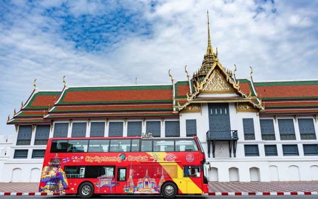 Descubra los amplios encantos de Bangkok desde la parte superior de un autobús de dos pisos en un recorrido lleno de acción con Autobús Turístico. Elija entre un boleto de 24/48/72 horas según sus planes de viaje y disfrute de las visitas turísticas a su propio ritmo.
